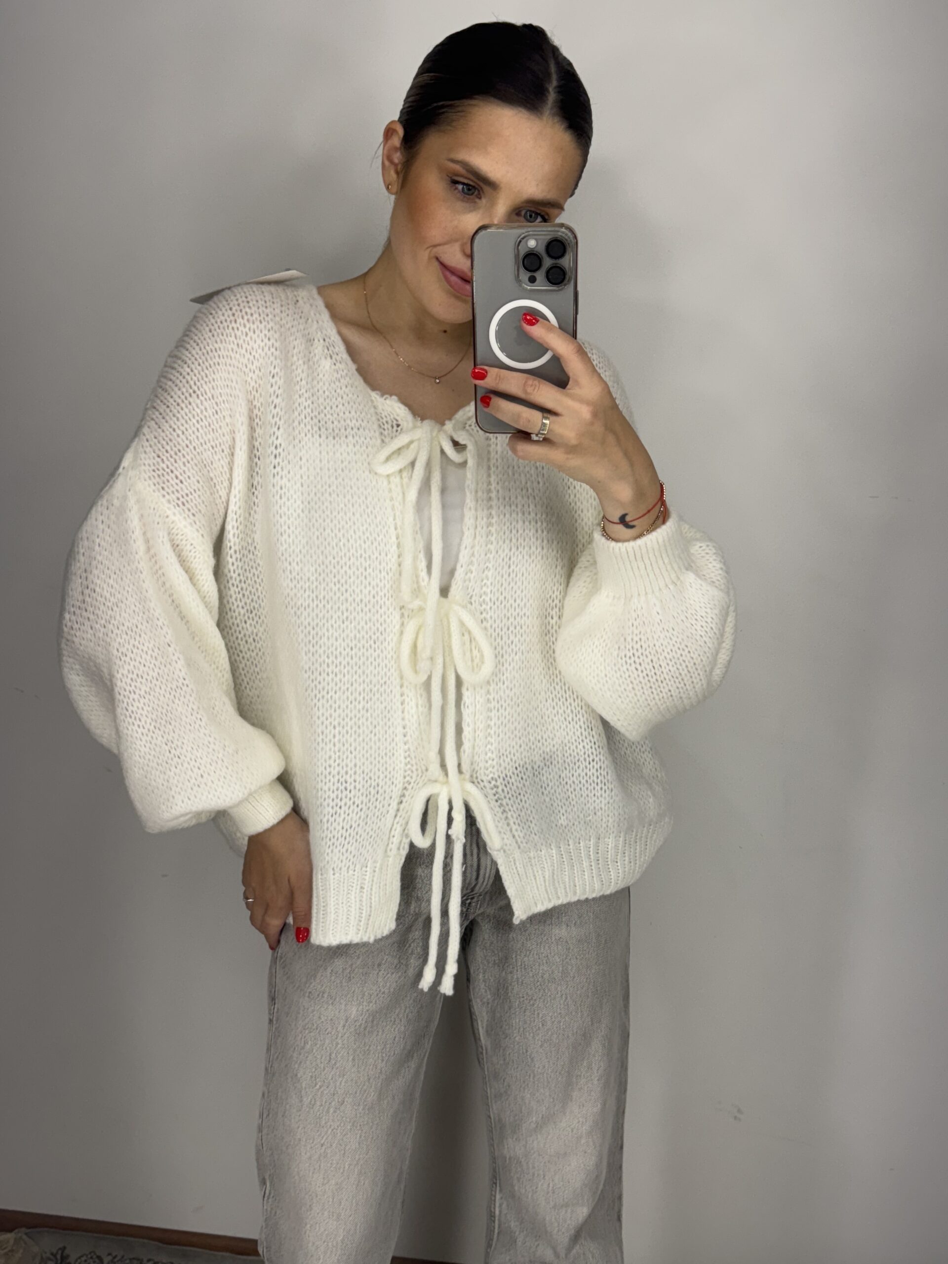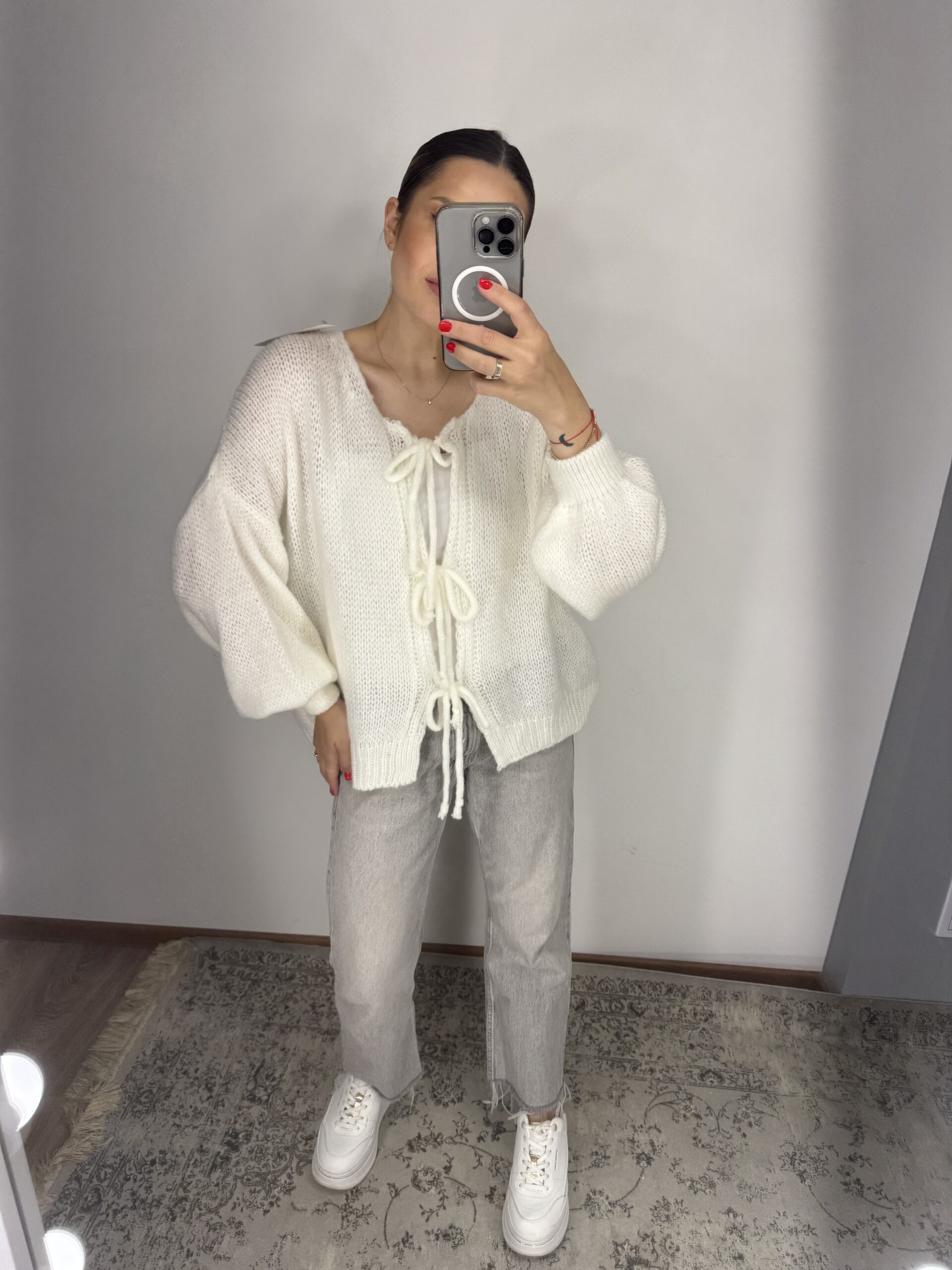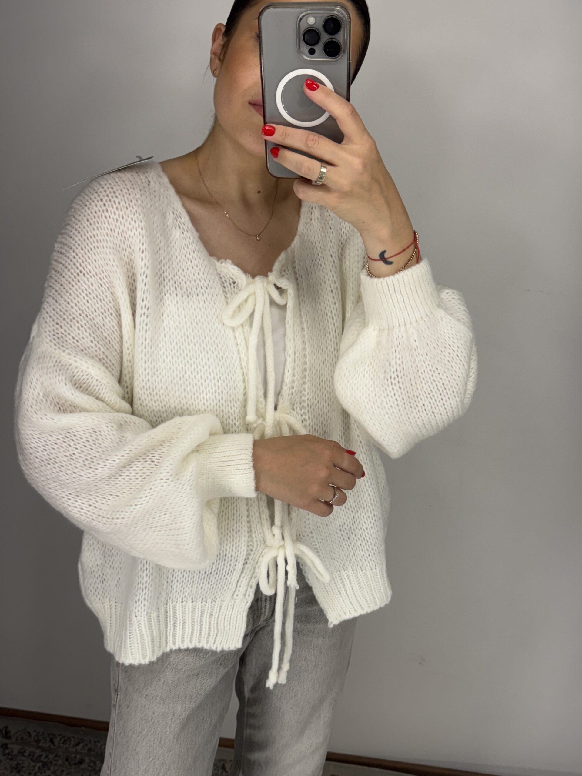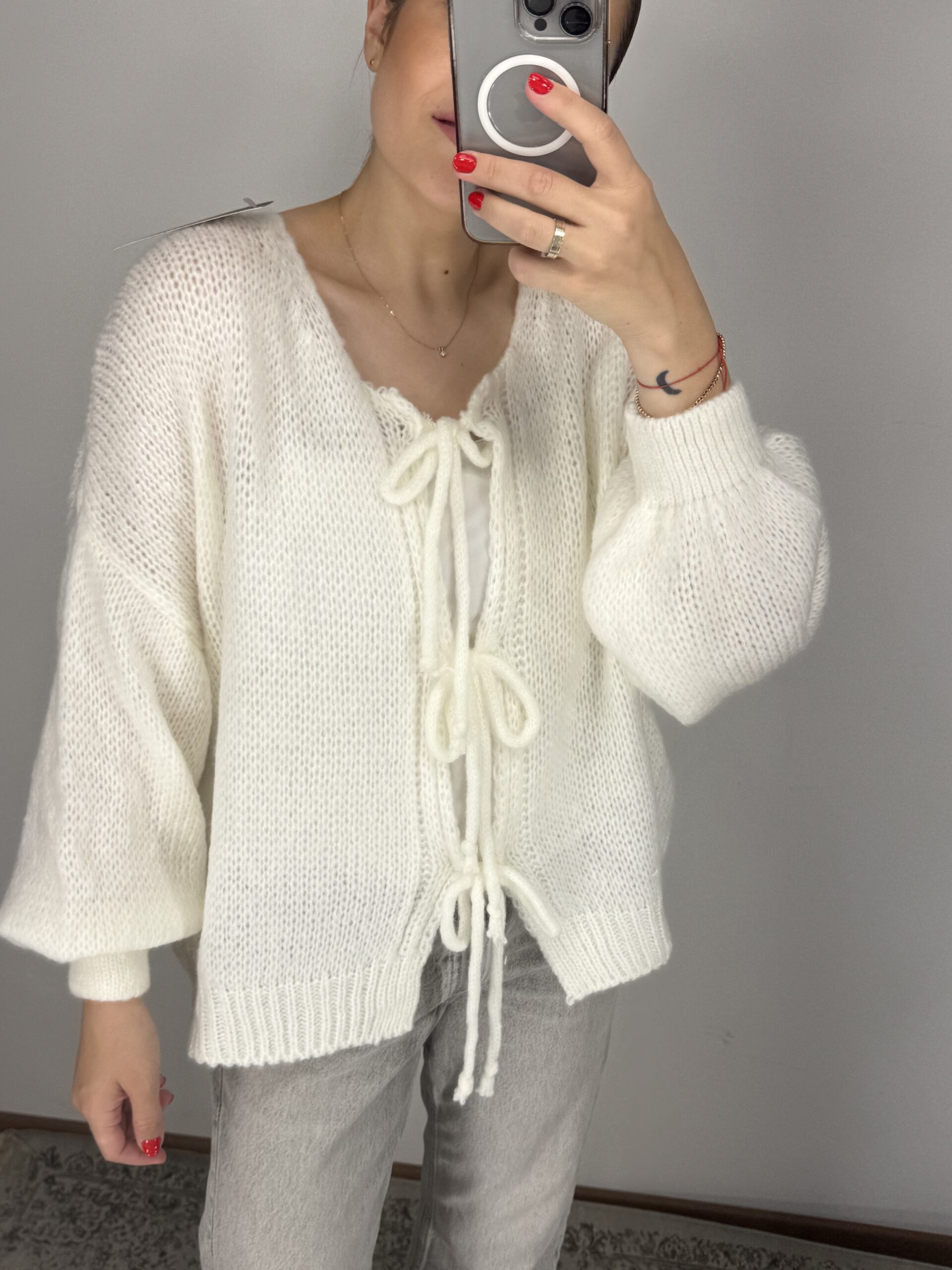 Baltos spalvos megztinis su vilna