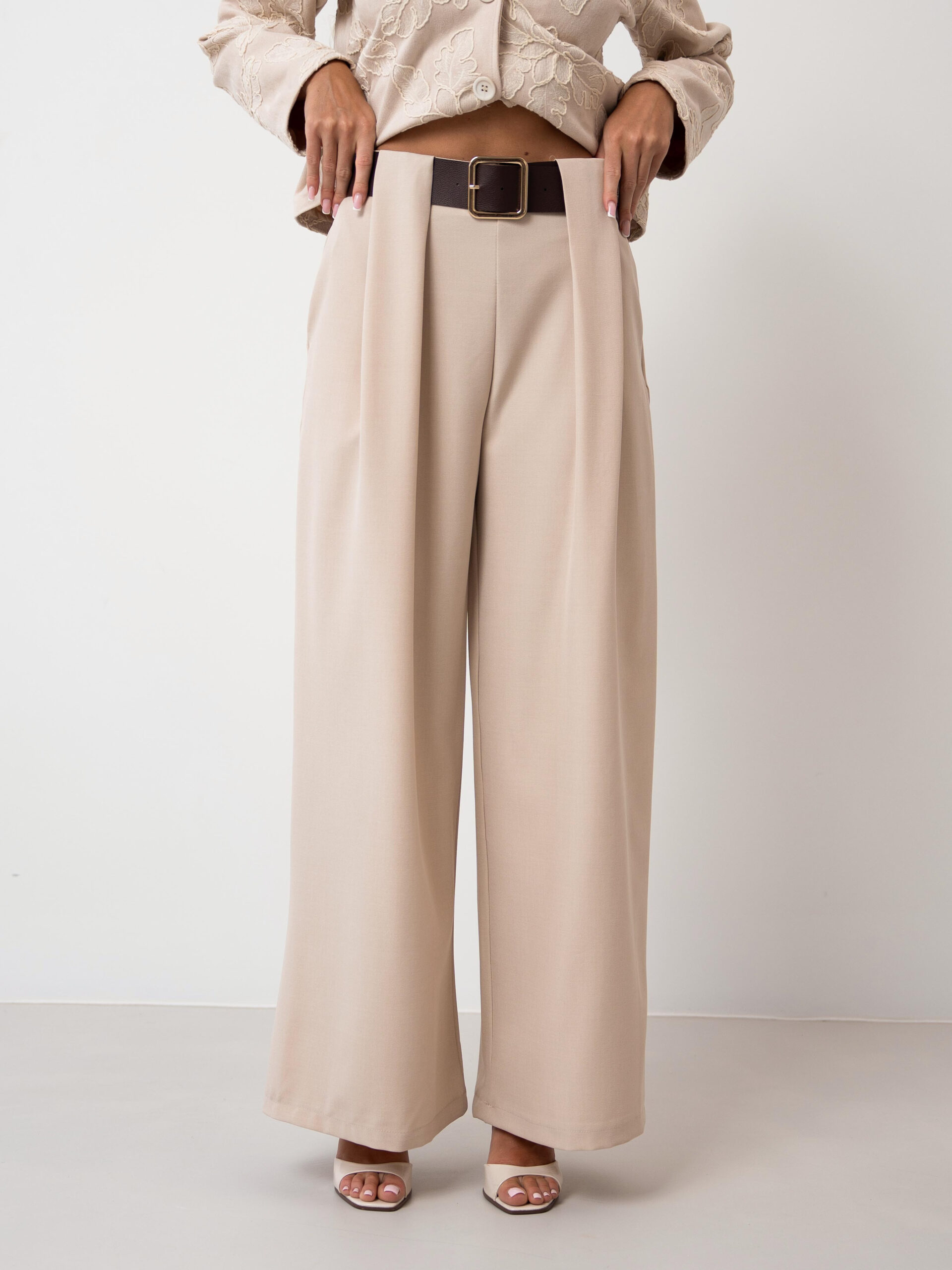 Kelnės su diržu, liemuo su guma, yra kišenės