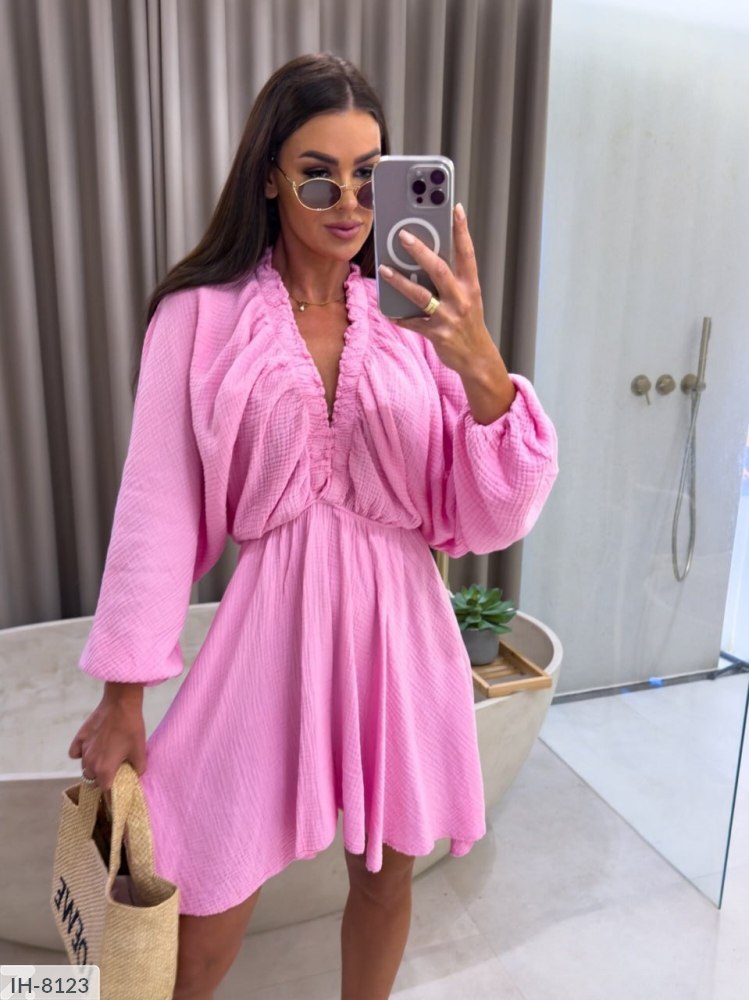 Rožinė suknelė ilgomis rankovėmis